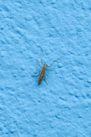 small insect on blue wall