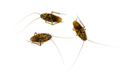 Group of dead cockroaches isolated on white background.