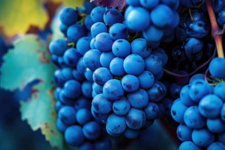 Close-up of deep blue grapes with a natural backdrop, ready for harvest