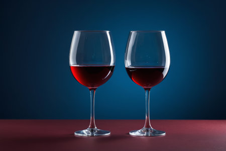 Two glass stemware glasses with red wine