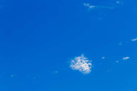 Clear blue sky with white fluffy clouds in summer season. Abstract nature background.