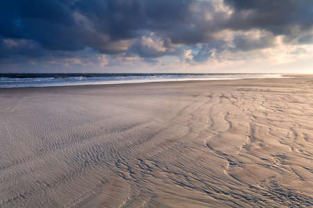 sunrise over North sea sand beach, Holland