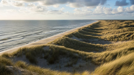 wild beach with dunes on a windy day, generative ai
