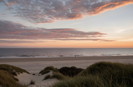 colorful sunset and dunes at the coast
