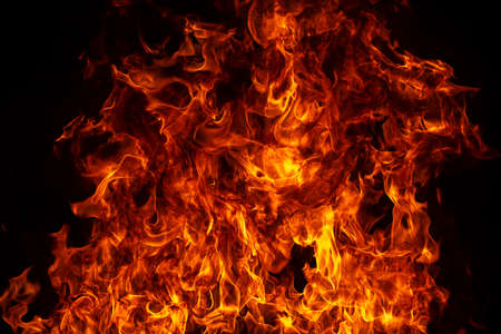 Fire flames on a black background. Texture of fire. Abstract background.