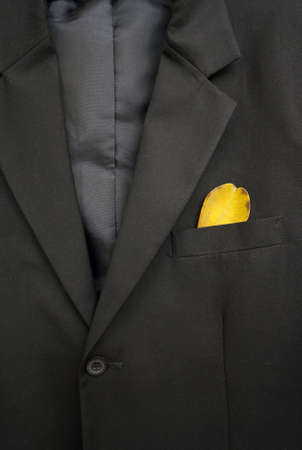 Ecology concept, businessman keeping a yellow leaf in his pocket