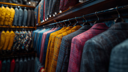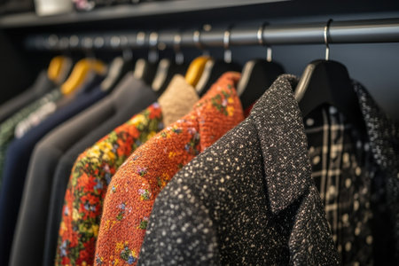 A vibrant array of tailored coats hanging neatly, each showcasing unique colors and textures, ideal for fashion enthusiasts seeking seasonal style inspiration.