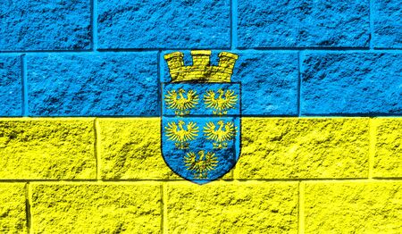Flag of Lower Austria close up painted on a cracked wall