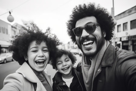 A happy, cheerful family bonding outdoors, looking at camera generated by artificial intelligence
