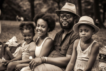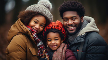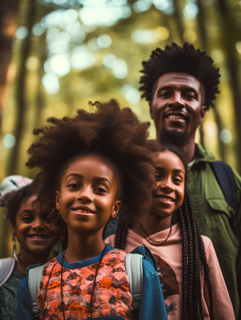 Joyful Black Family Embracing the Great Outdoors. Generative AI