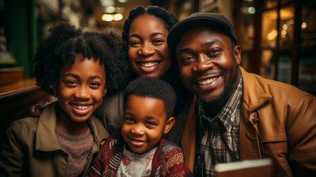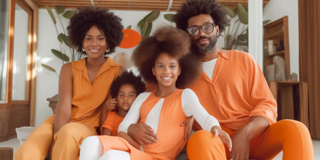 happy, smile and portrait of an african american family in their home together, created with generative ai