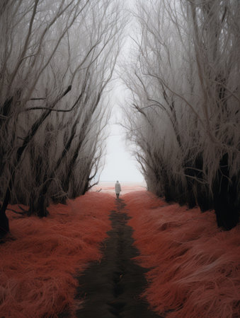 A captivating image of a hand holding a torn photograph depicting misty pine trees in a dark, atmospheric setting. Evokes emotions and memories.