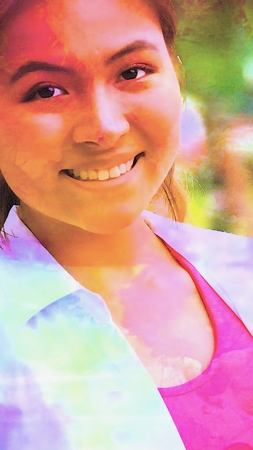 A girl stands in a magical cloud of pink hues lost in her thoughts at dusk embracing tranquility.