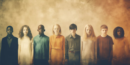 Generative AI : Diversity multiethnic group silhouette head face international people Friendship Male and female Social networks Community Background retro dirty grunge vintage sta