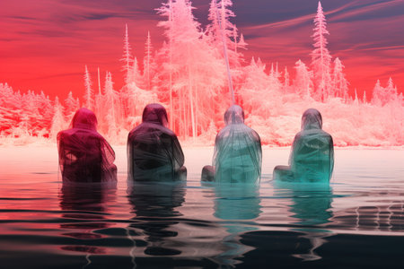 Ice Fishing: Photograph ice fishermen patiently waiting for their catch on frozen lakes. - Generative AI
