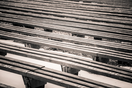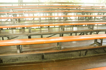Perspective View of Wooden Plank Seats and Stairs at Stadium