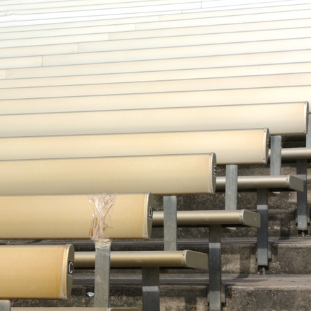 Empty white metal tribune for watching races, modern architecture, minimalism