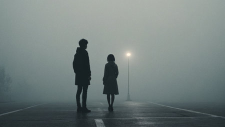 Wistful Solitude Anime Style Silhouette in Foggy Parking Lot