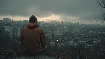 Eternal Solitude: A Lonely Figure Braving the Vast Seashore -ar 3:2