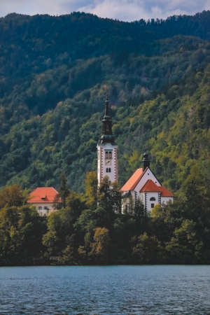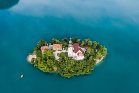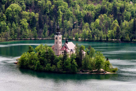 The picturesque island in the middle of Lake Bled, Slovenia