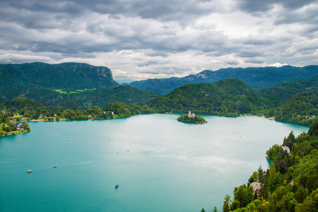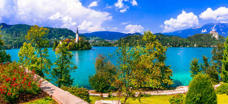 Unique Bled Lake, panoramic view, Slovenia.