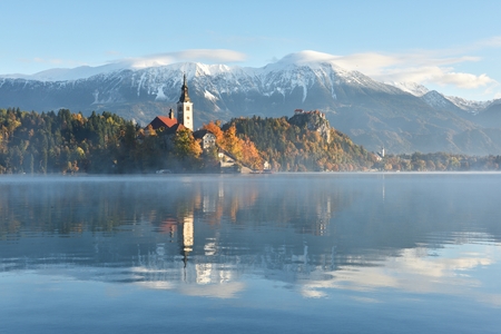Lake Bled at autumn sunrise, Slovenia, Europe