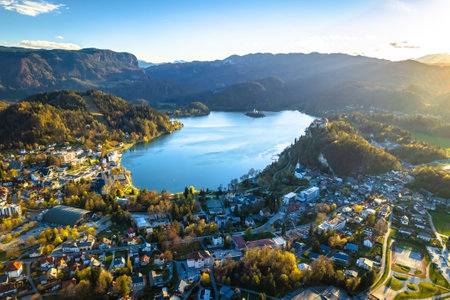 Autumn aerial view of Lake Bled, Slovenia