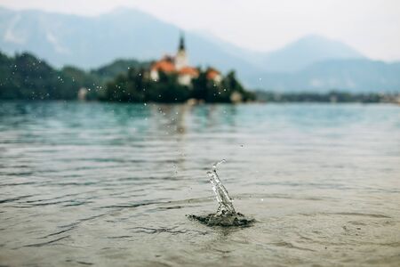 Lake Bled Slovenia island. Alpine lake with island in Europe.