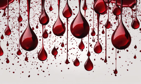 Red drops of blood fall against a white background
