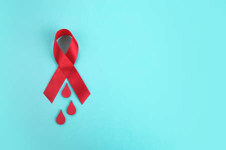 Red ribbon as symbol of AIDS and HIV support and hope.
