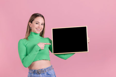 Portrait of young handsome man holding blackboard and giving thumbs up