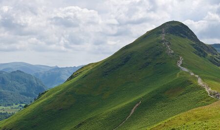 Panoramic Mountain valley landscape in Fairfiled Horseshoe, Lake District, Cumbria, Great Britain