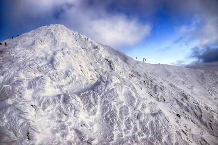 KARPACZ, POLAND - MARCH 08, 2020: Snezka or Sniezka (in Czech and Polish) is a mountain on the border between the Czech Republic and Poland. Winter landscape. Giant Mountains, Poland, Europe.