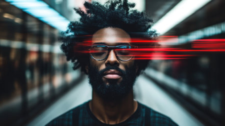 This striking image captures the essence of shifting identities using motion blur to convey the complexities of self perception and the passage of time.