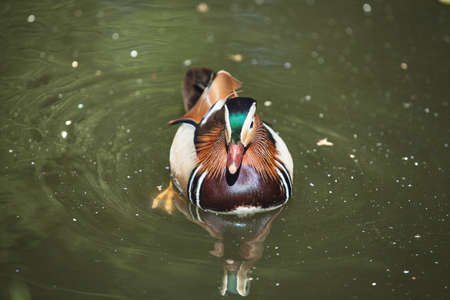 Duckling swimming in the lake. Beautiful duckling swims in the water.