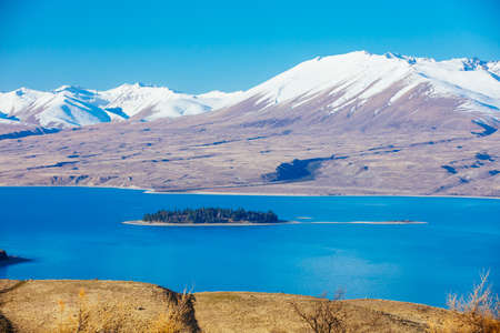 Beautiful view of Tekapo Lake with Mount Cook in the background, New Zealand