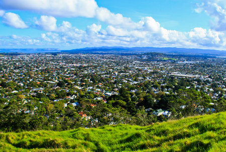 AUCKLAND, NEW ZEALAND - DECEMBER, 2017: Auckland city downtown and harbour view from mount Victoria.