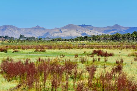 Port Hills as seen from Travis Wetland Nature Heritage Park in Christchurch, New Zealand