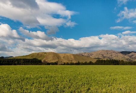 View of scenic Canterbury Plains from Lees Valley in Canterbury, New Zealand