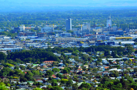 View of Christchurch city from Mount Pleasant in Canterbury, New Zealand