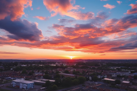 Captivating Aerial View: Majestic Sunset and Cloudscape above Luton City, England UK - Spectacular Drone Footage