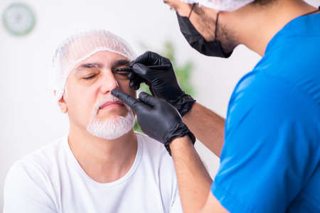 A man at the reception at the plastic surgeon. Before nose surgery, rhinoplasty