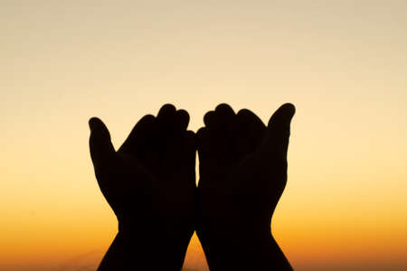 hands open praying up worship. Concept of worship blessing from god. Eucharist Therapy Bless God Helping Repent Catholic Easter Lent Mind Pray. Christian Religion concept background. fighting and victory for god