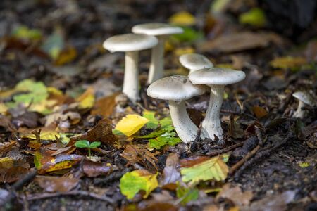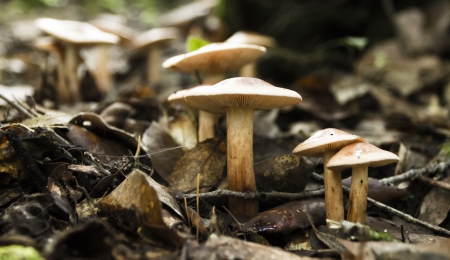 Mushrooms growing in the forest. Beautiful macro image of a group of mushrooms.