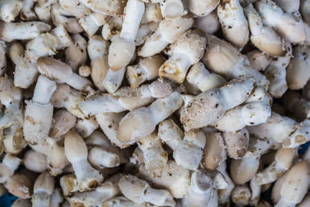 A lots of fresh Organic White pleurotus ostreatus mushroom. pattern texture background.
