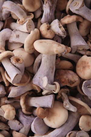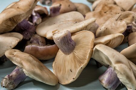 Lepista saeva mushrooms on the table side view close-up