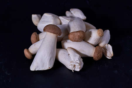 mushrooms Pleurotus eryngii cardoncello on a dark background