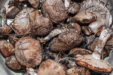 Edible mushrooms, the kingdom of wildlife. Mushrooms prepared for cooking, a natural product, a trophy of the silent hunt.