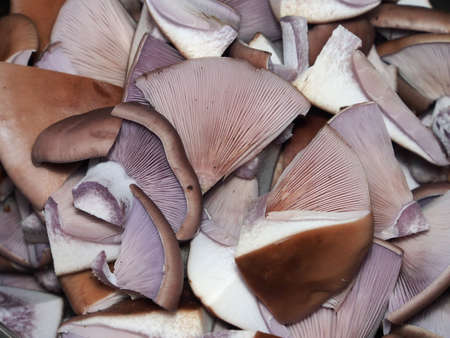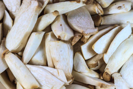 Pieces of cut mushrooms abstract background . Close up.