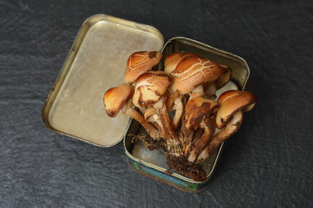 Cleaned mushrooms honey agarics Armillaria mellea background